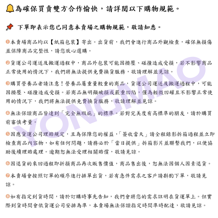 ● 為確保買賣雙方合作愉快,務必詳閱本賣場之購物規範。